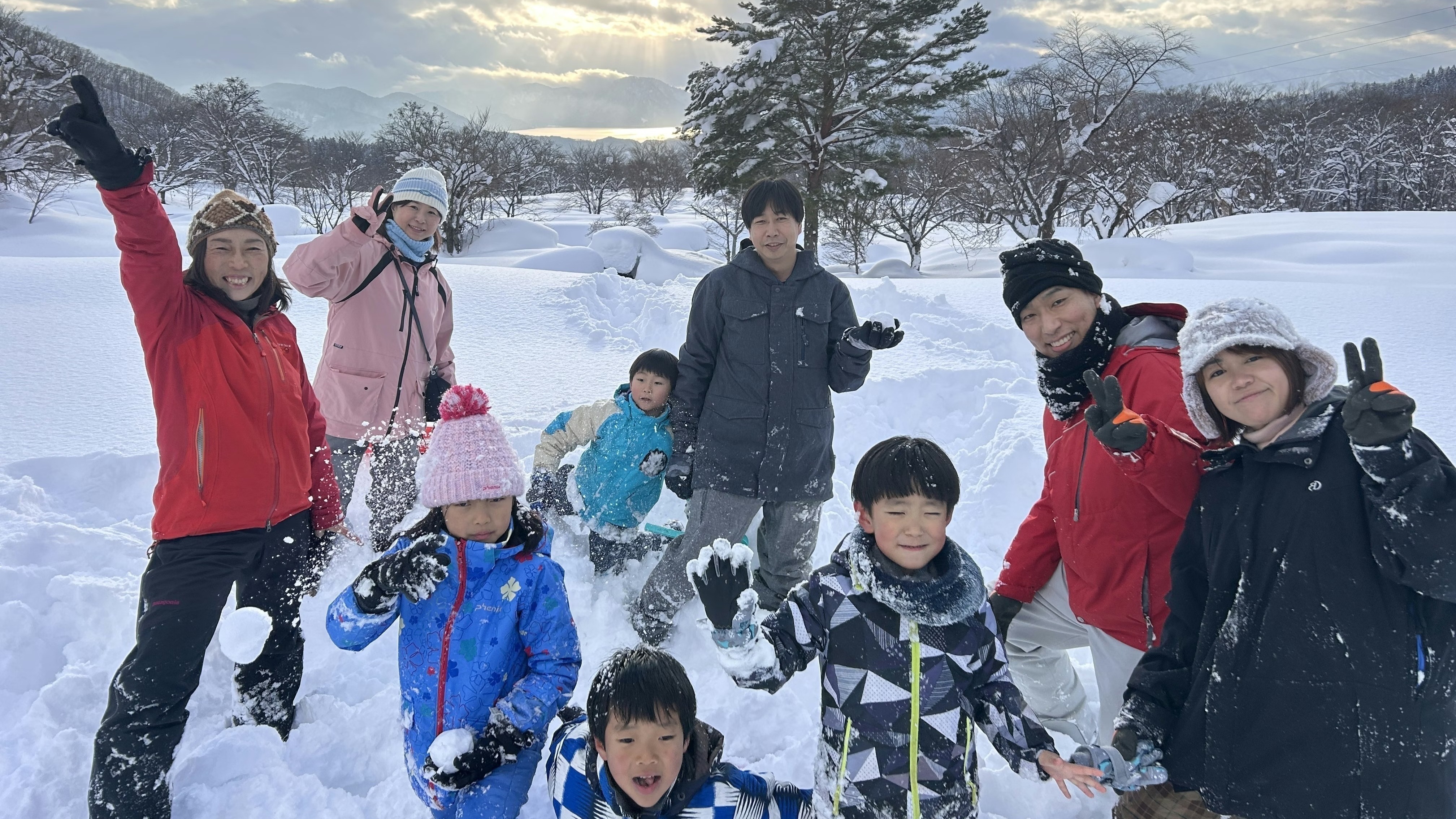 🌟 泊まるのは温泉付きの一棟貸切の宿で、雪遊びに疲れたらすぐにお宿で暖まれます!雪遊びに必要なレンタル品もあり。