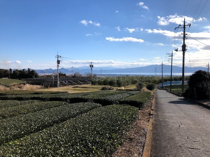 登って行った先には広大なお茶畑と眼下には駿河湾と伊豆半島等々の