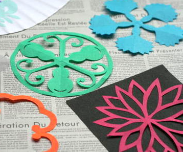 紋切りは、紙を折り、型紙どおりに切り抜いて「紋」のかたちを作る