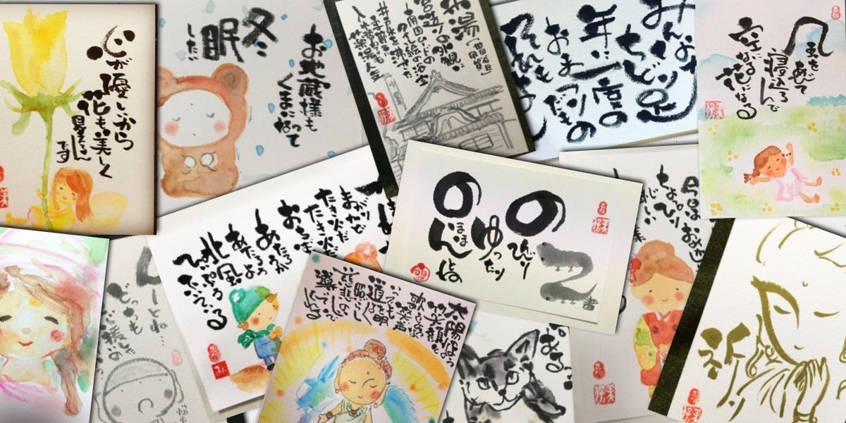 120分1幸座で(準備と片付け含め)味のある簡単な筆文字や、可愛らしいお地蔵様が描けるようになります。
