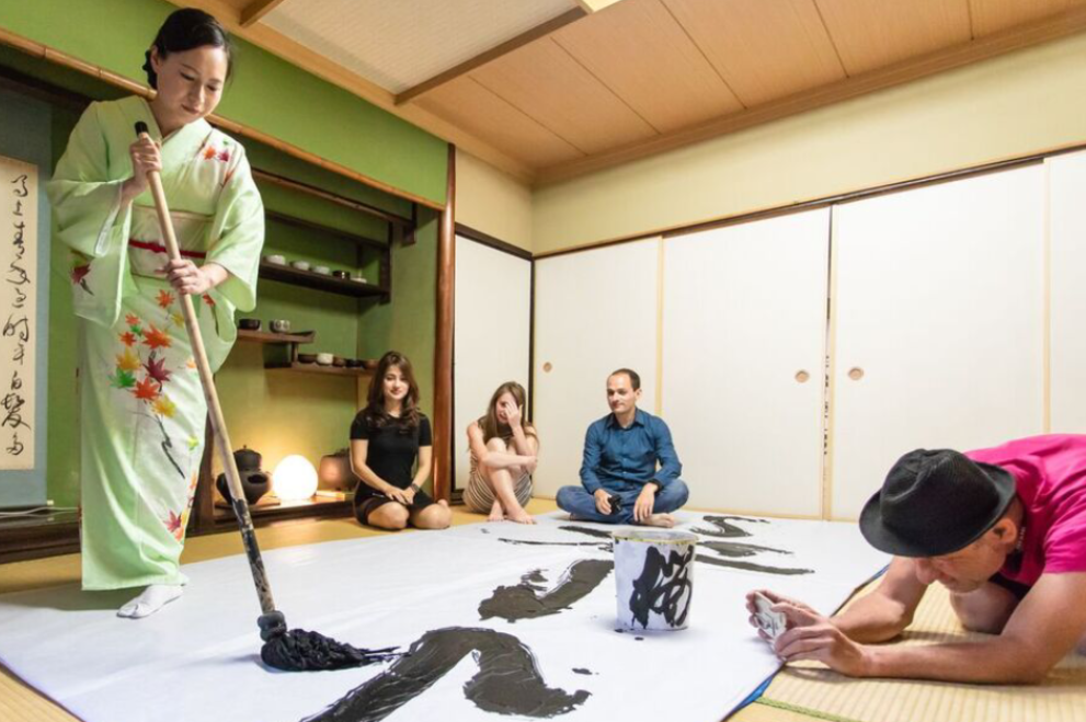 【ゲストへのご挨拶】書道パフォーマンスをしたことはありますか?書道をしたことのある方でも書道パフォーマンスを体験したことのある方は少ないでしょう。パフォーマンスができる場所も限られています。京都二条の町家で書道パフォーマンスを体験してみてはいかがでしょうか。1.レクチャー:書道の歴史背景、美しい書道の書き方、道とは何か、マナーなど2.書道家、緑風による書道パフォーマンス(4畳の大きさ)3.ご自身での書道パフォーマンス(約1畳)4.終了証5.接茶(Green Roseオリジナル抹茶と干菓子)10-18時(ご希望の体験時間をお知らせください。)【料金に含まれるもの】書道パフォーマンス、書道道具一式(筆モップ、墨、紙など)体験には1人1枚(約1畳)のパフォーマンス体験がついております。1枚につき3000円の追加料金で枚数は増数できます。