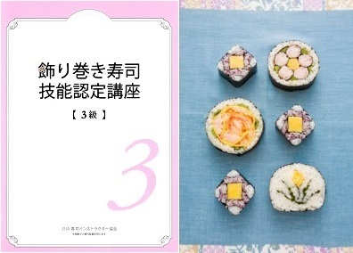 飾り巻き寿司の入門として最適なメニュー3種類をたったの半日で習得できるお得な講座です。体験を修了したすべての方に寿司インストラクター協会が発行するJSIA飾り巻き寿司技能3級認定証を授与いたします。初めて飾り巻き寿司にチャレンジする方、飾り巻き寿司の2級以上を目指す方、お気軽にお問合せください。