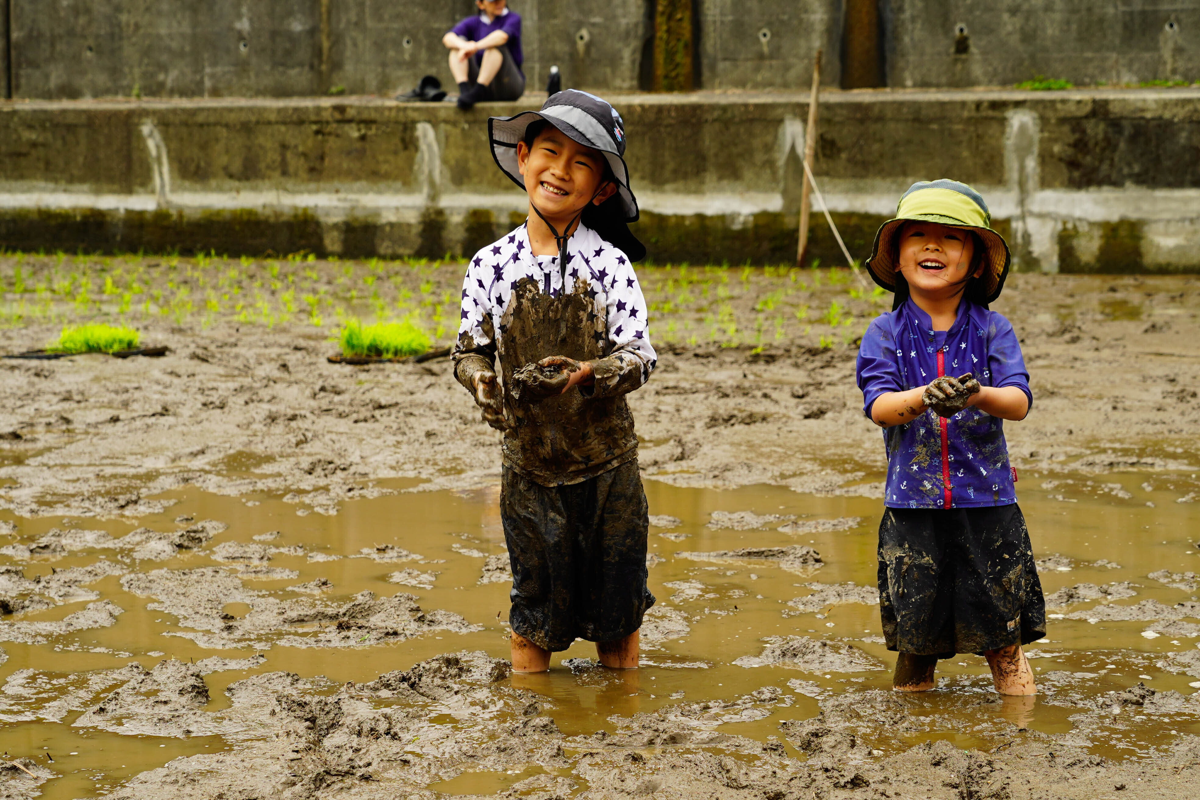 田植えに飽きてしまった場合、田んぼで泥んこ遊びや生き物探しを楽しんで頂けます。
