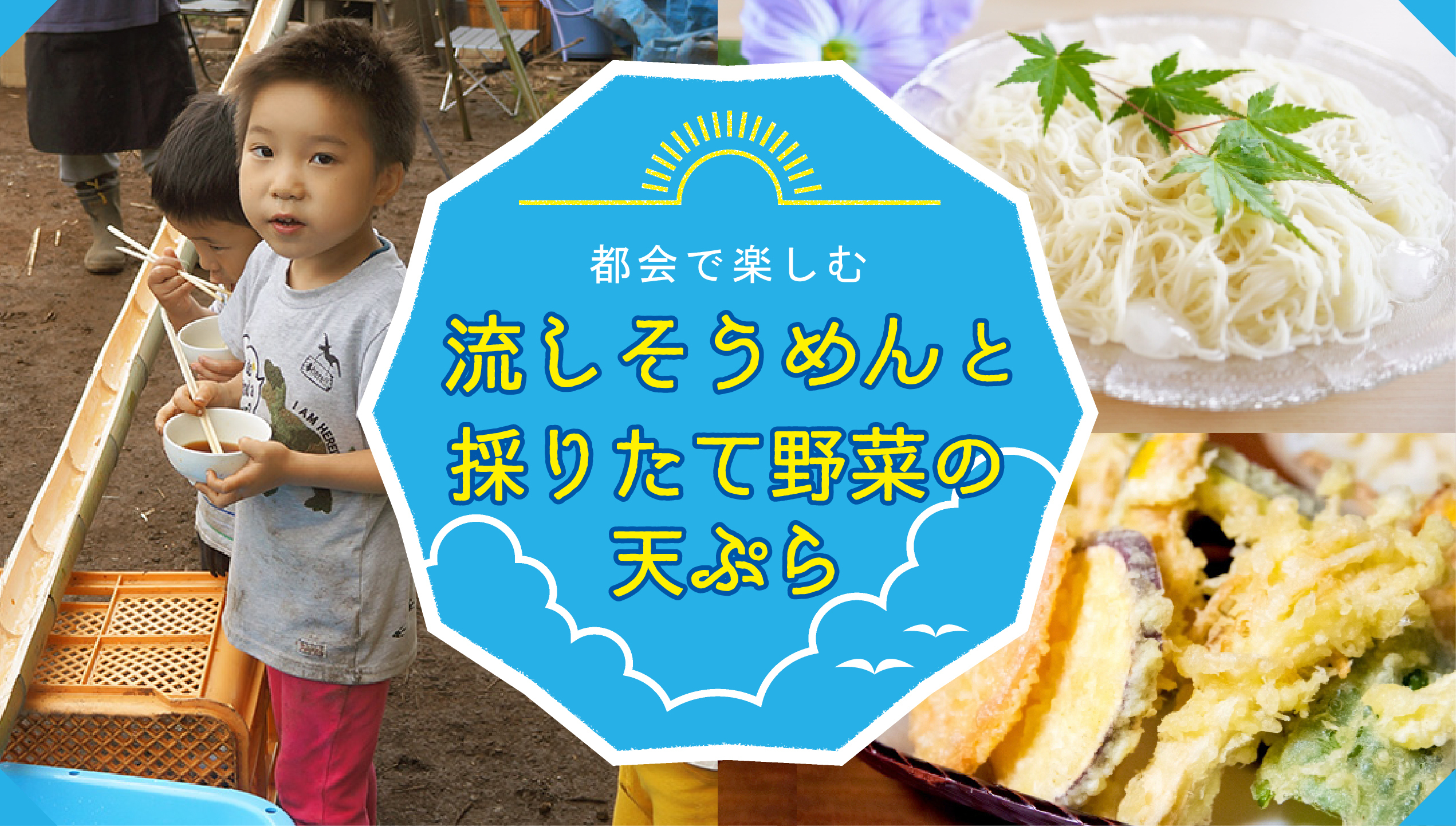 夏の山内ぶどう園で流しそうめんを楽しみましょう!夏野菜の収穫体験もします。お土産沢山持って帰って下さいね。