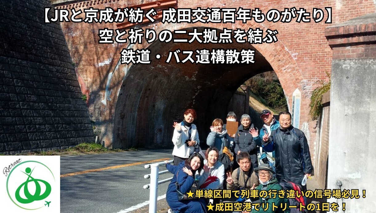 JRと京成が築いた成田交通の百年をめぐる歴史旅。成宗電車・軽便鉄道・成田新幹線・鉄道連隊・地域バスの痕跡を歩き、空港と門前町を結ぶ軌跡を体感できるガイドツアー。成田山前で自由解散、参道散策も楽しめます。