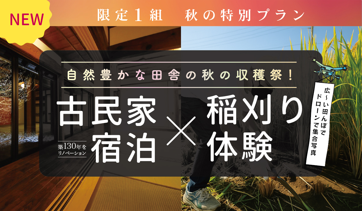 ・田んぼでの稲刈り体験・ドローン記念撮影