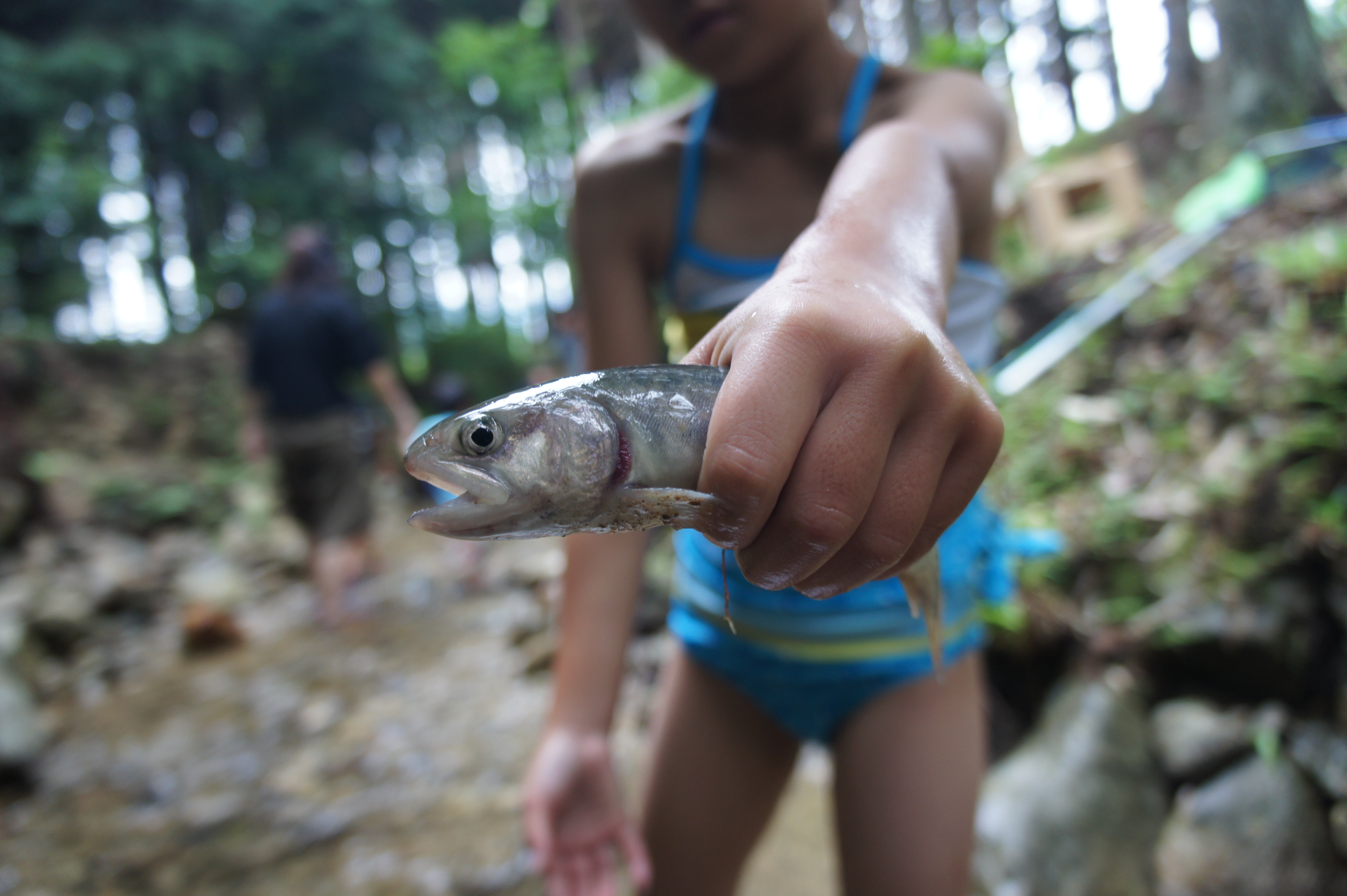 ・イワナを手づかみ、網でつかむ体験ができます。